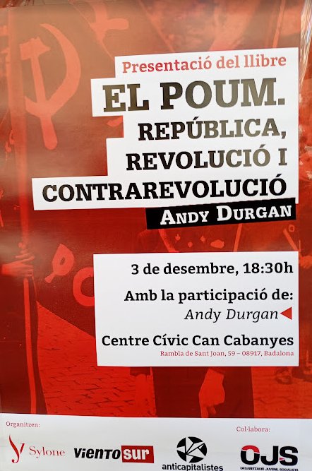 yer por la tarde, en el Centro Cívico Can Cabanyes, tuvo lugar una charla muy interesante sobre la historia del siglo pasado con Andy Durgan, quien iba a presentar (en castellano) su obra sobre el POUM.